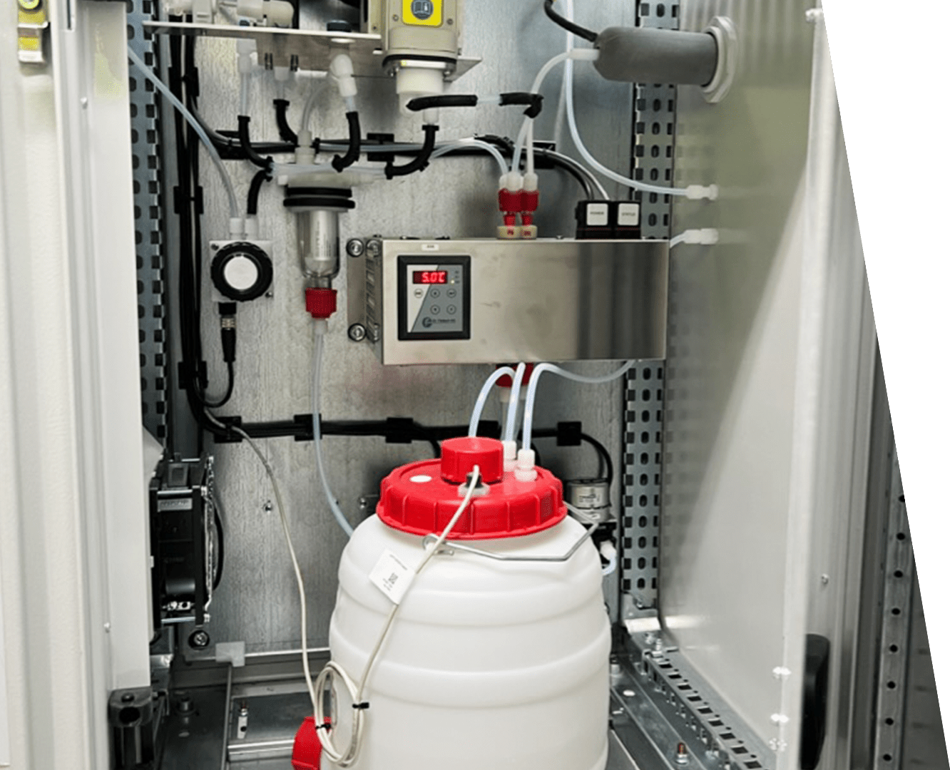 O sistema consiste num quadro com os equipamentos de analítica e o equipamento de condicionamento da amostra; ambos, com a última tecnologia e a nossa integração inovadora.